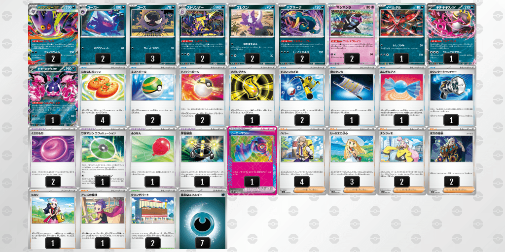 「メガゲンガーex」がきぜつさせられてしまうと特性が消えてしまう為、ヒーローマントできぜさせられにくくします!!